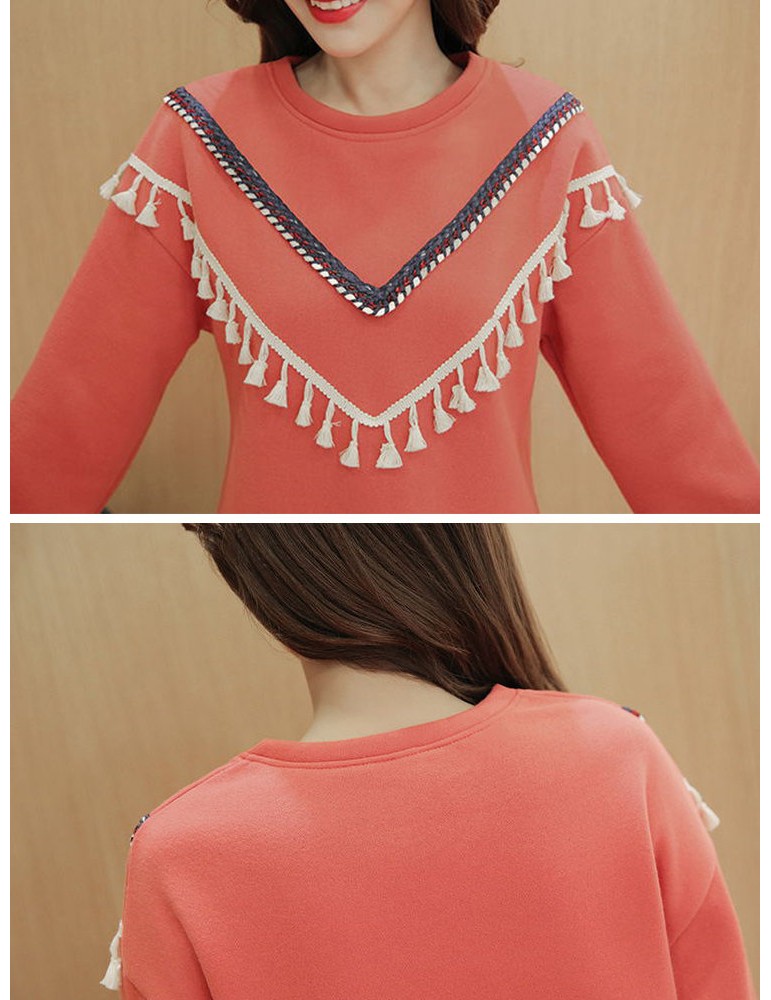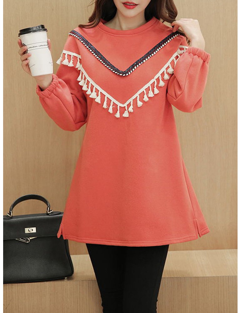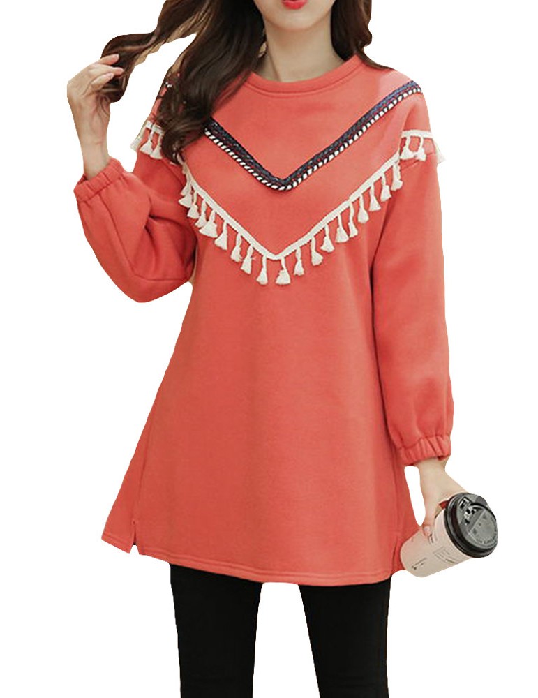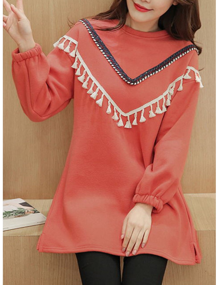 Women Ethnic O-neck Loose Long Sleeve Sweatshirt With Tassels