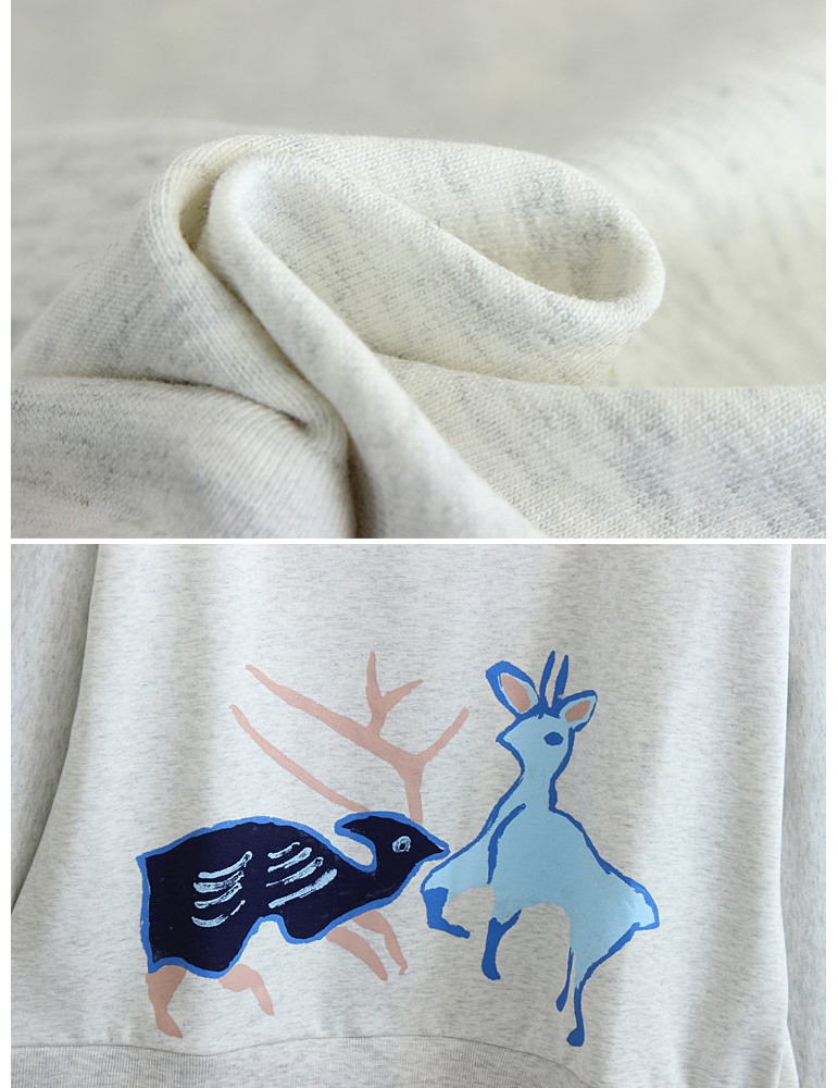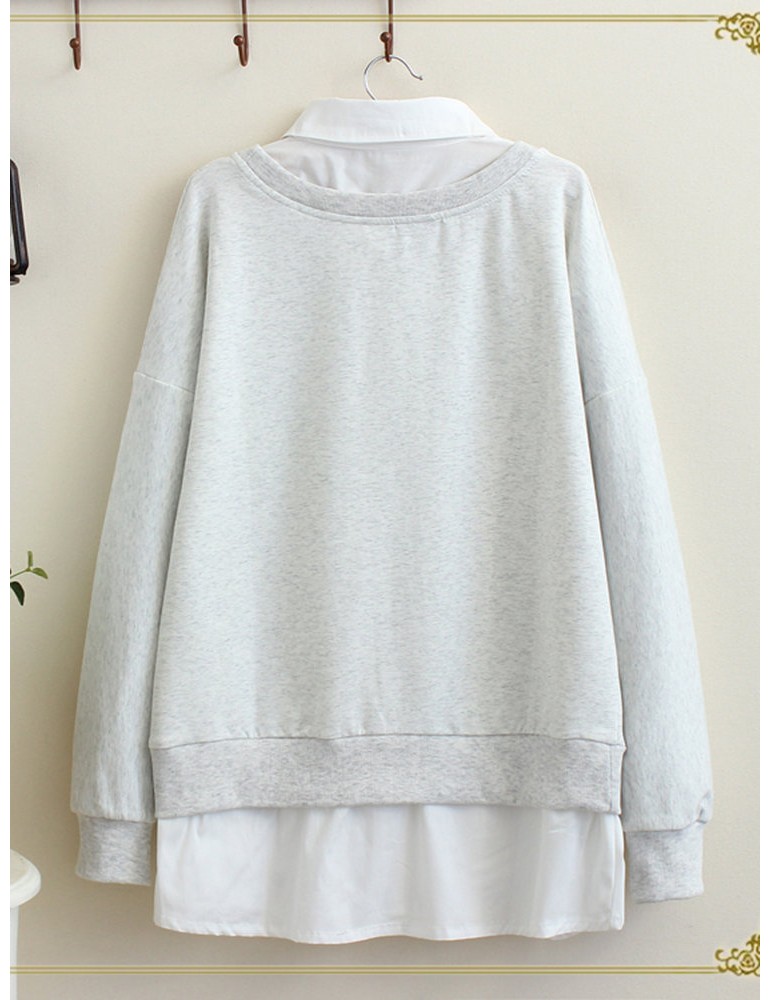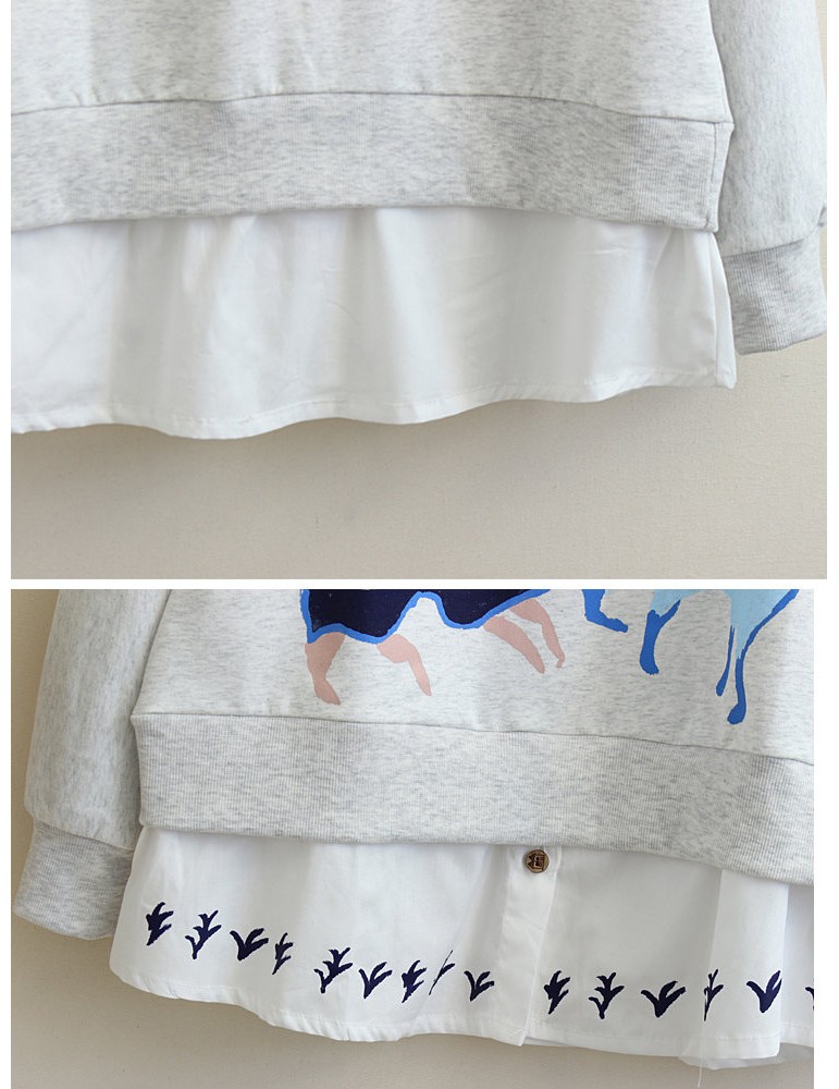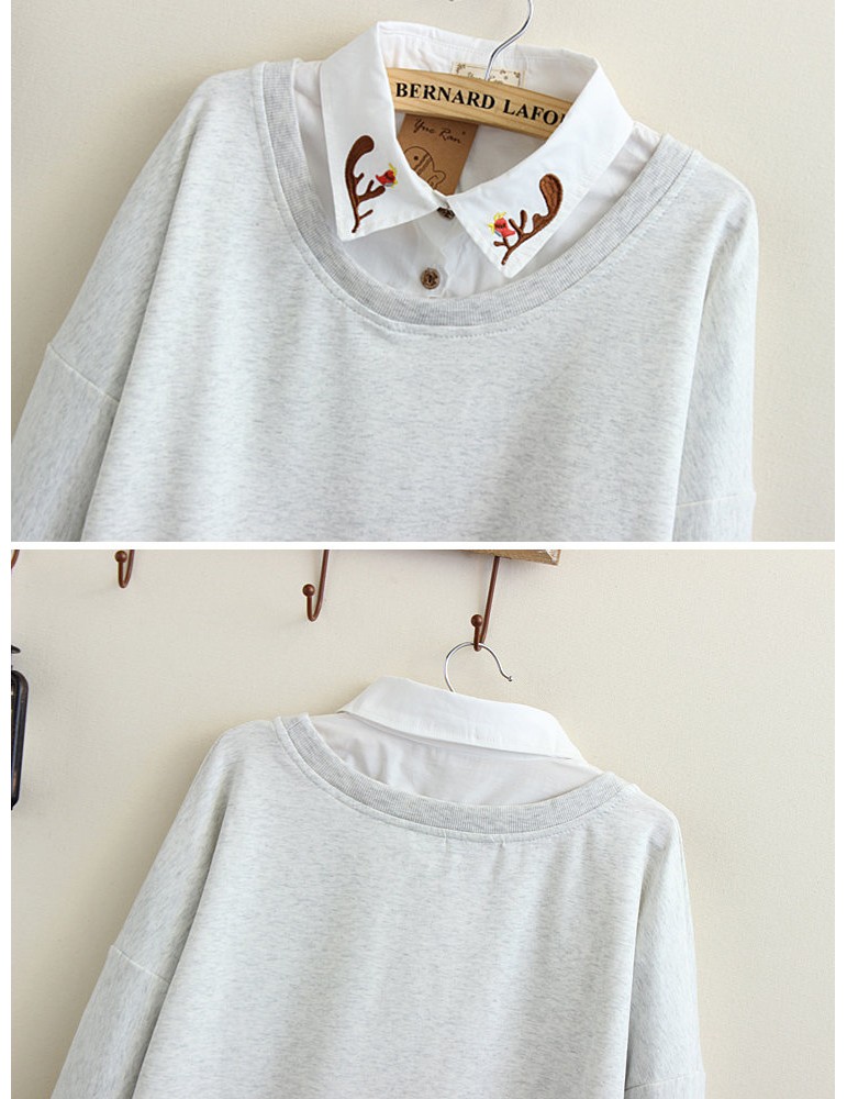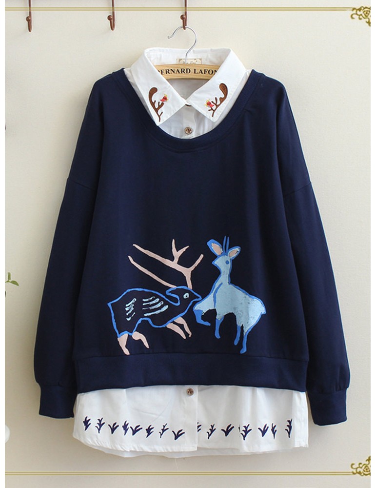Deer Print Fake Two Pieces Turn Down Collar Sweatshirt