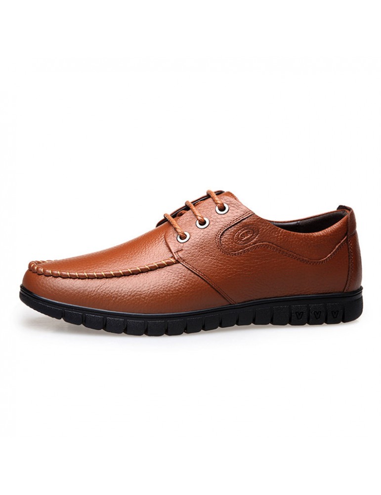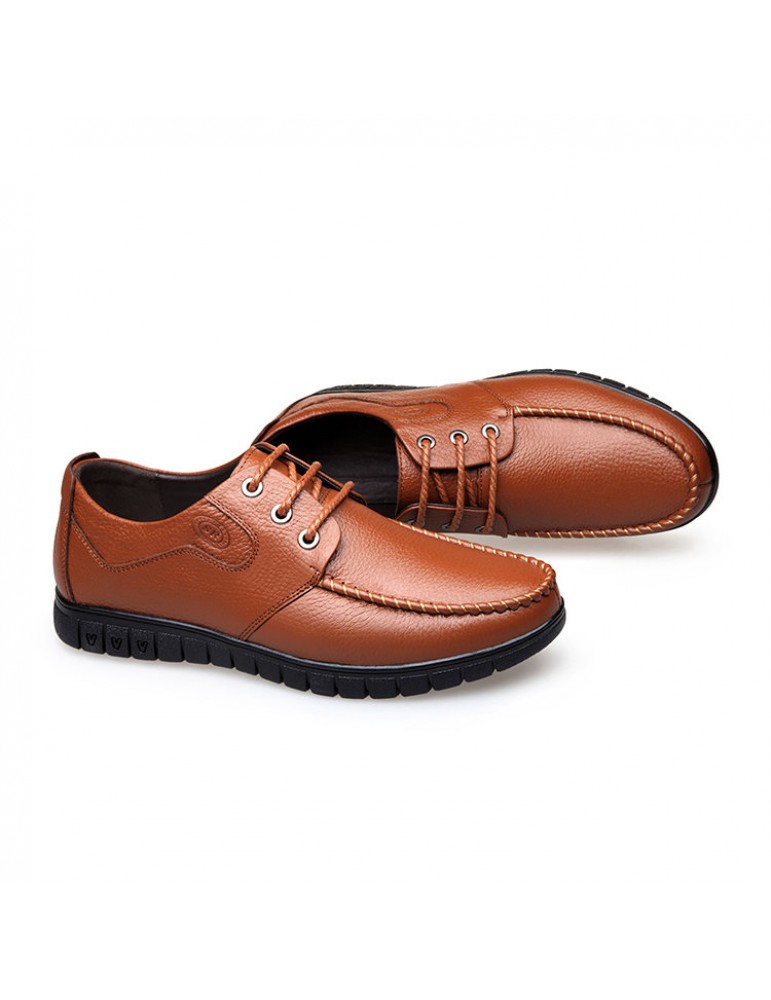 Men Classic Moc Toe Lace Up Soft Sole Casual Leather Shoes
