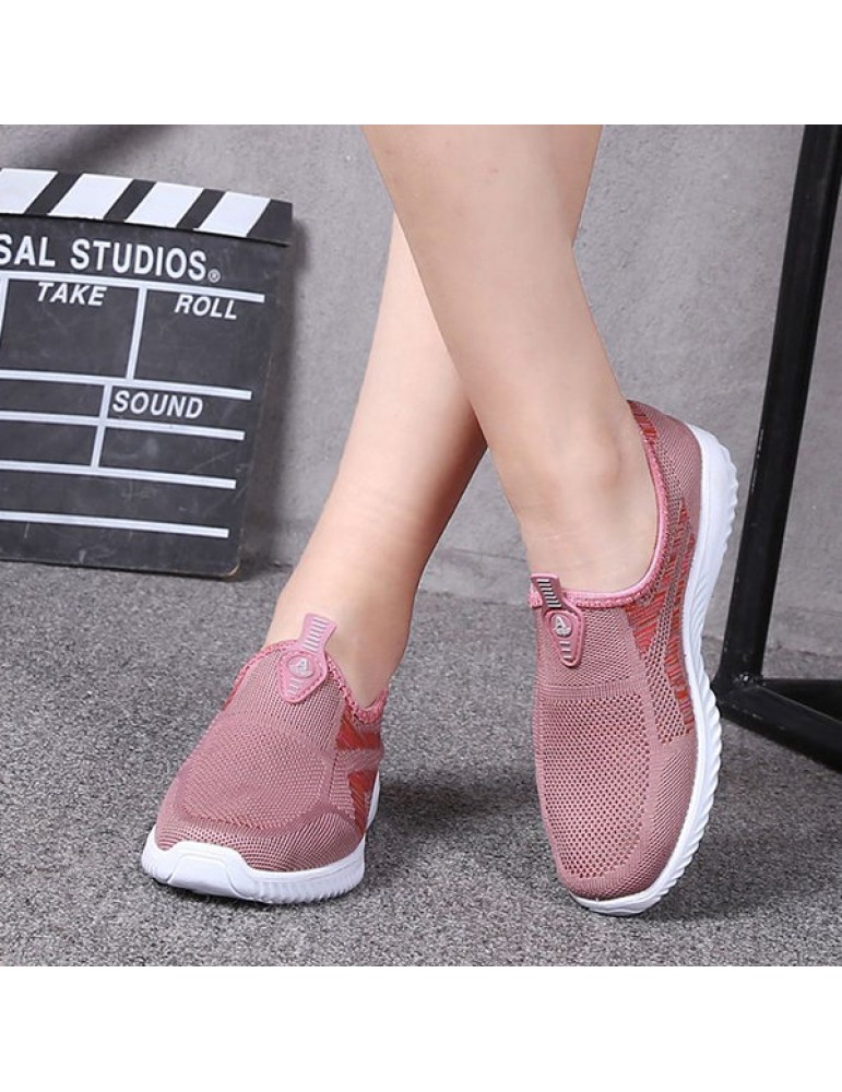 Outdoor Breathable Mesh Slip On Pink Sneakers For Women