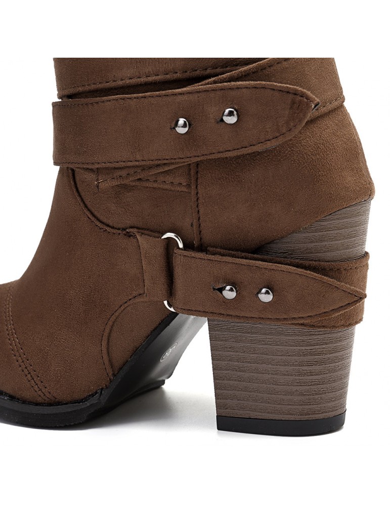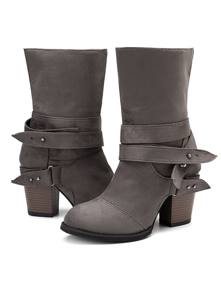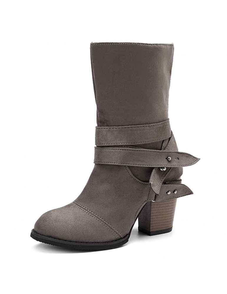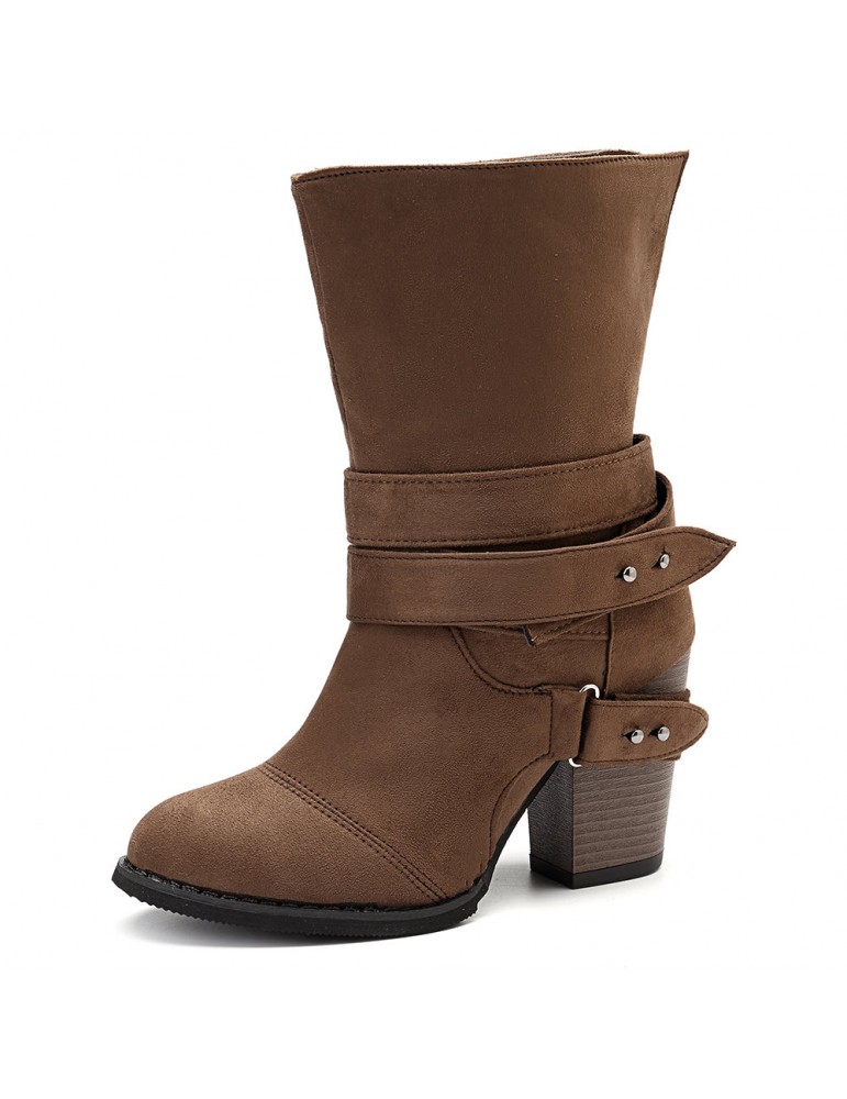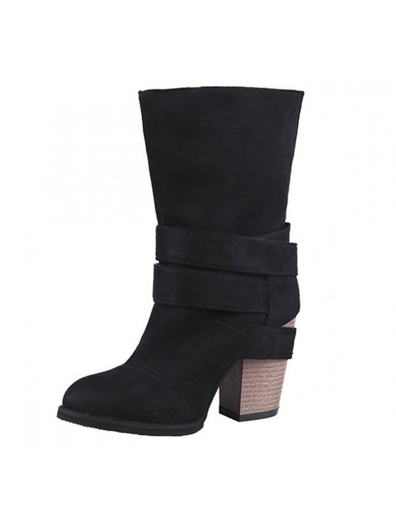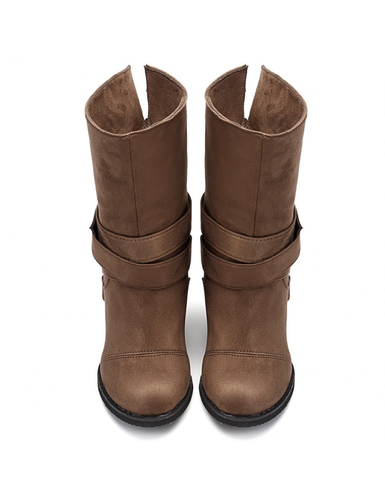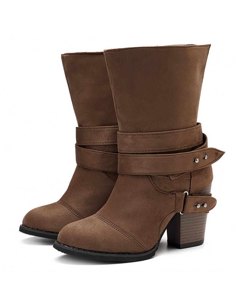Big Size Women Comfy Suede Buckle Mid-Calf High Heel Boots