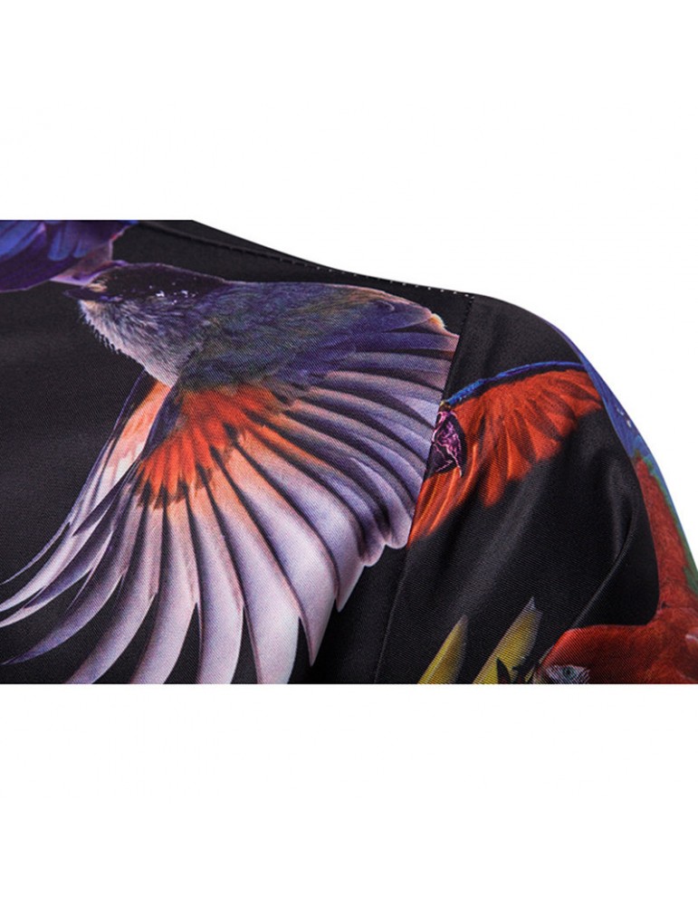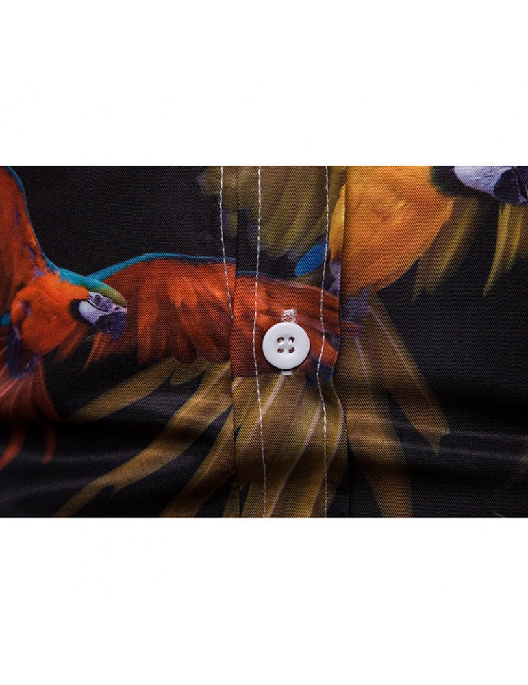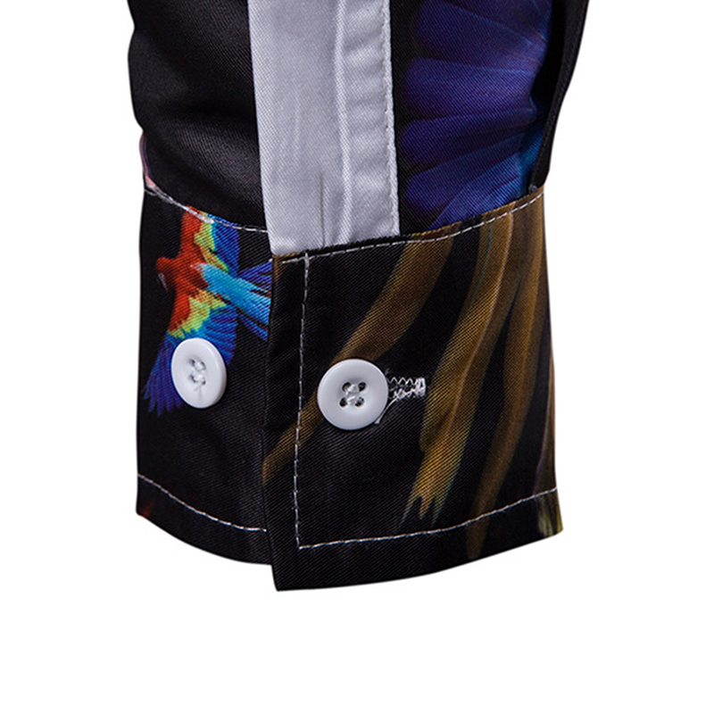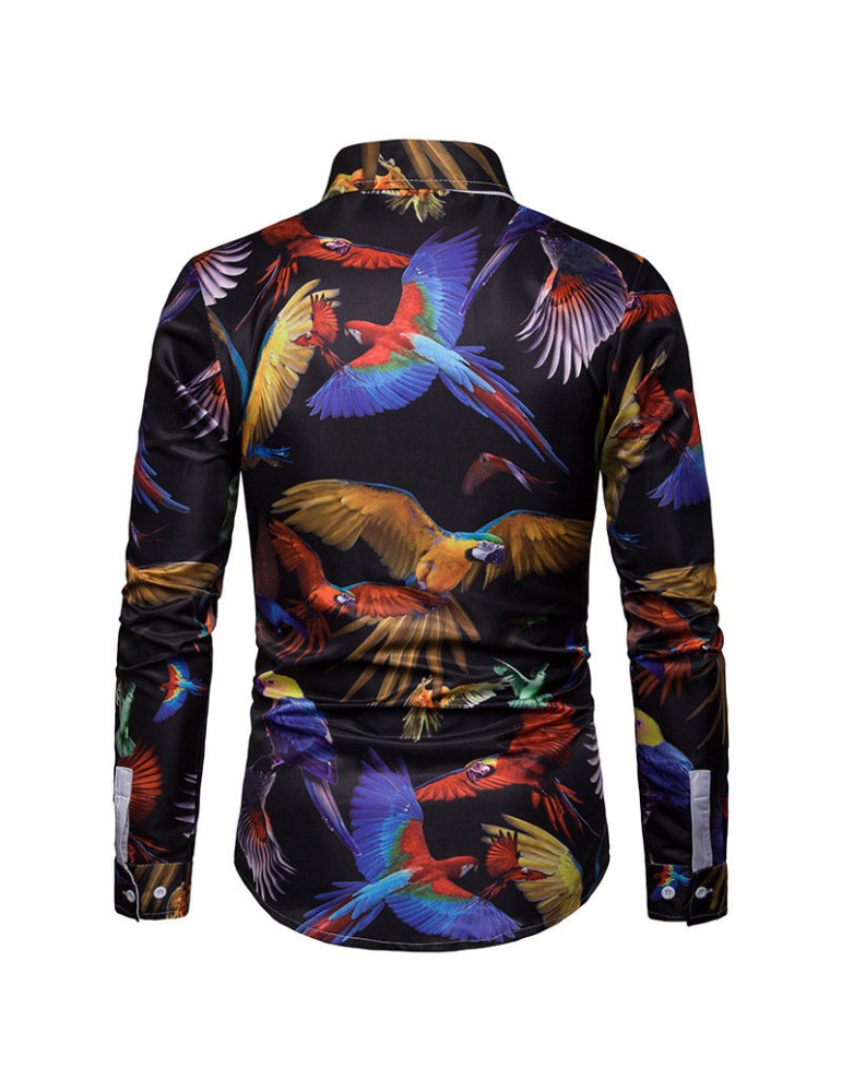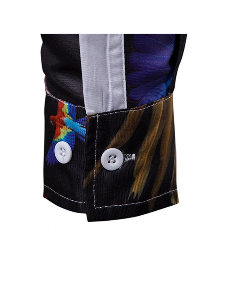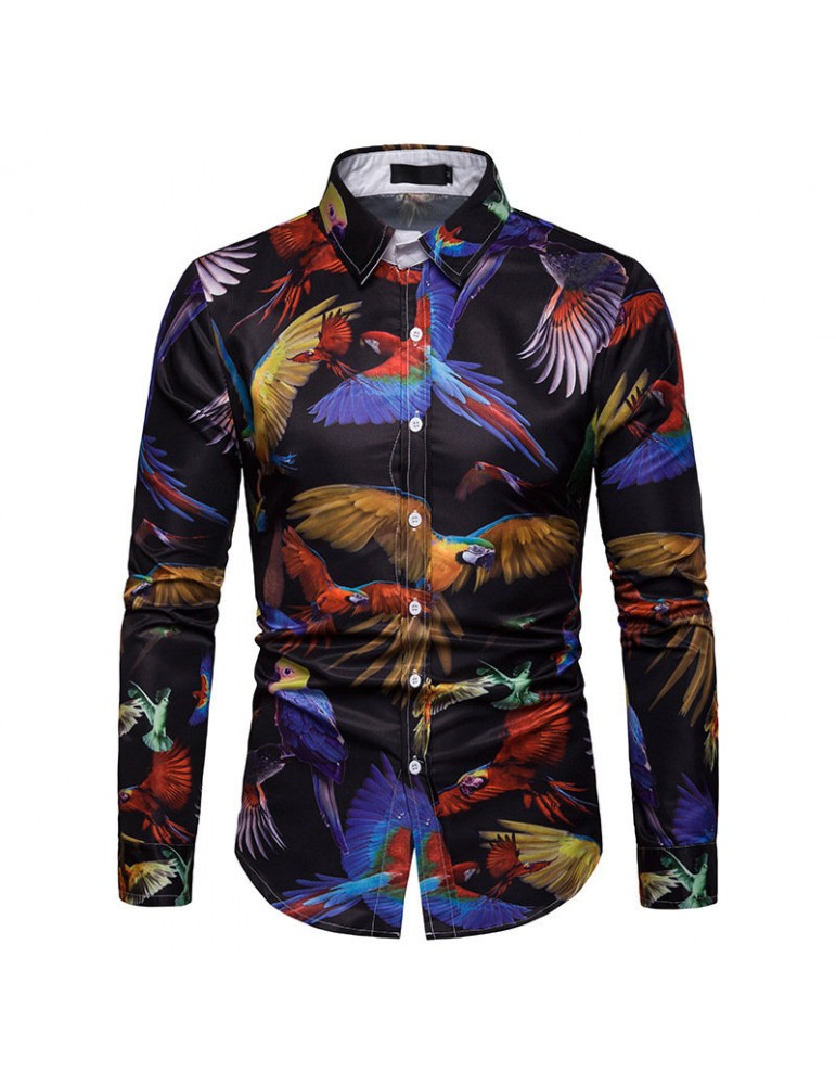 Men's Printing Fitness Cotton Turn Down Collor Botton Long Sleeve Shirt
