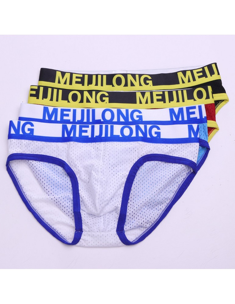 Mesh Ice Silk Breathable Low Waist Sexy Briefs for Men