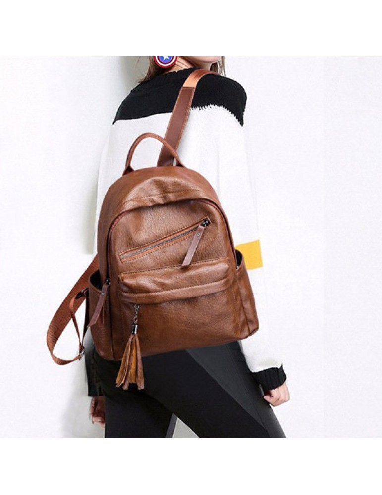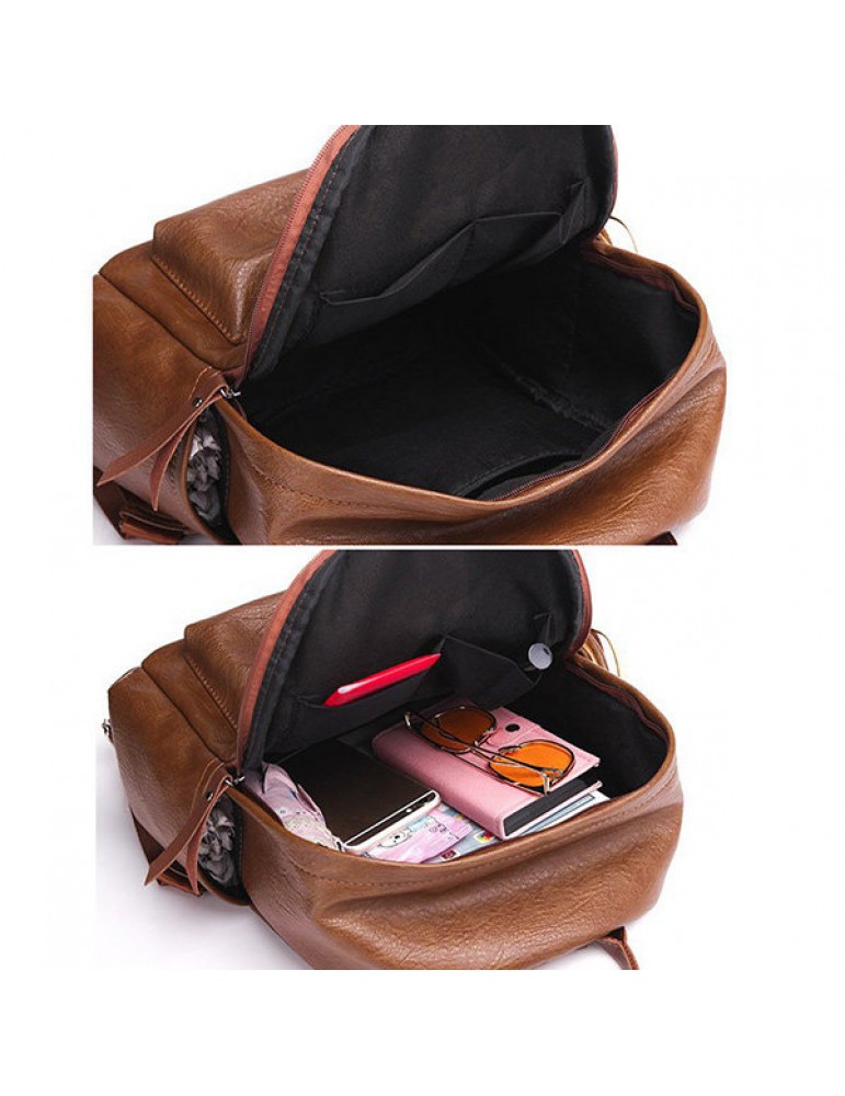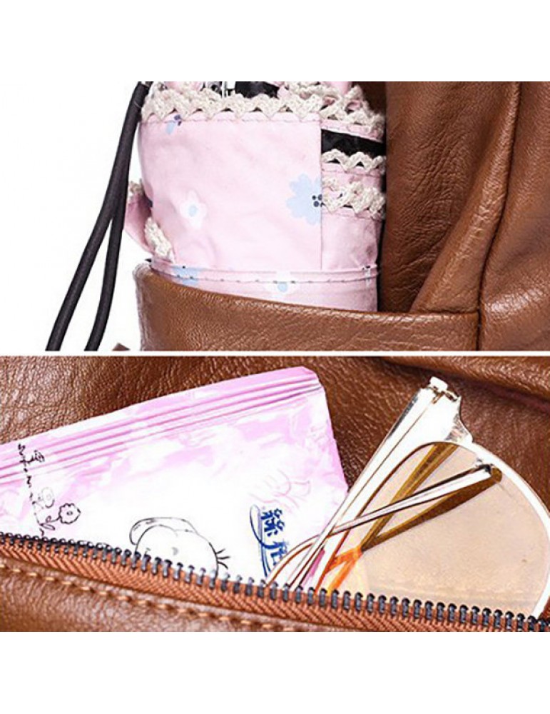 Women Retro Soft PU Leather Shoulder Bags Students Backpack