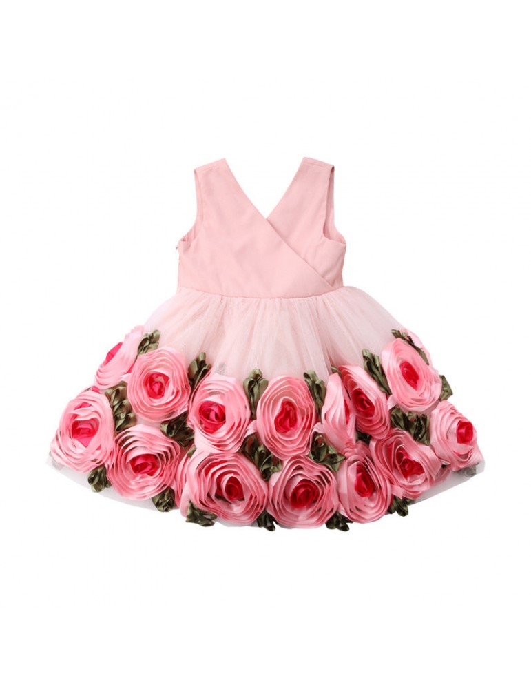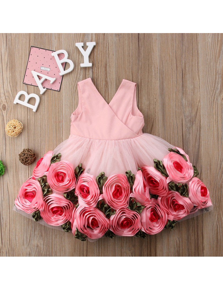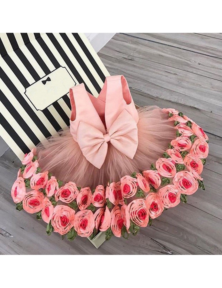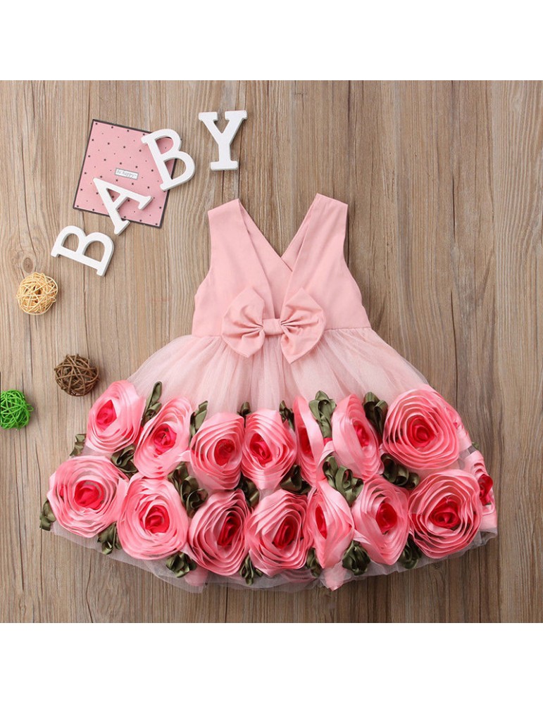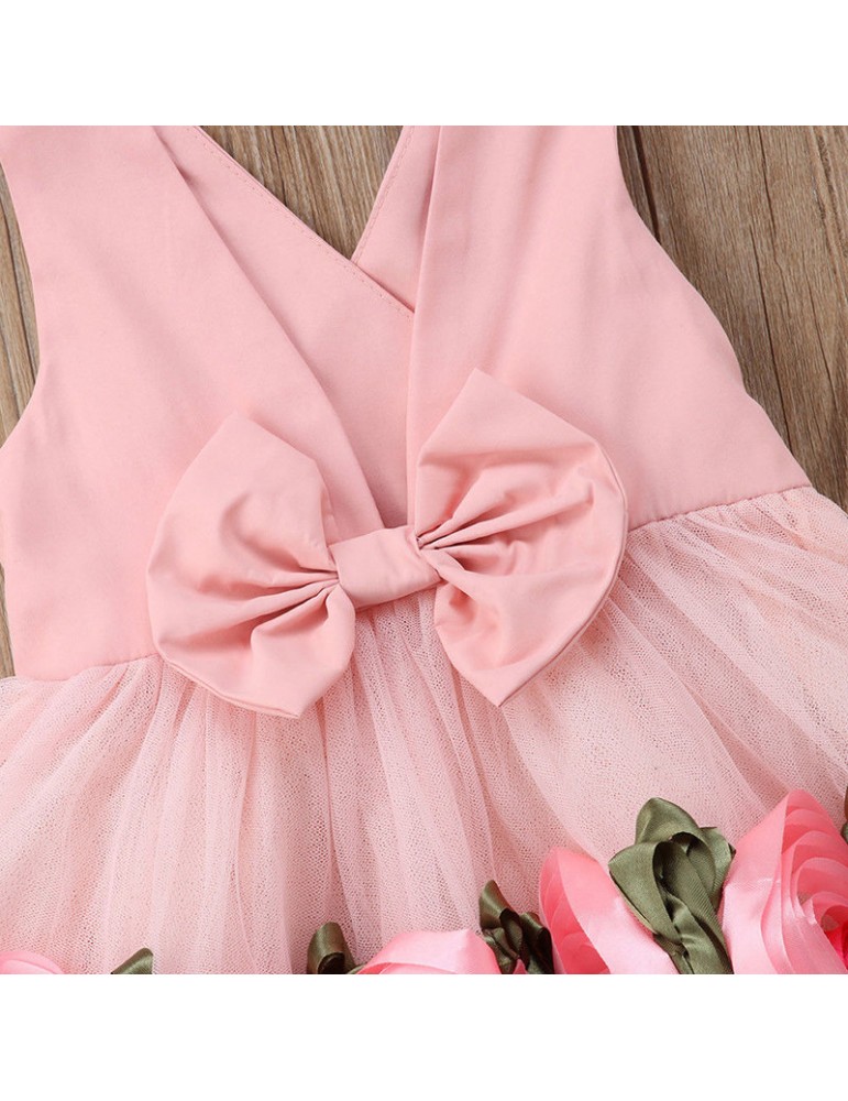 Flower Girls Dresses Kids Backless Bow-Knot Princess Dress For 3-13Y