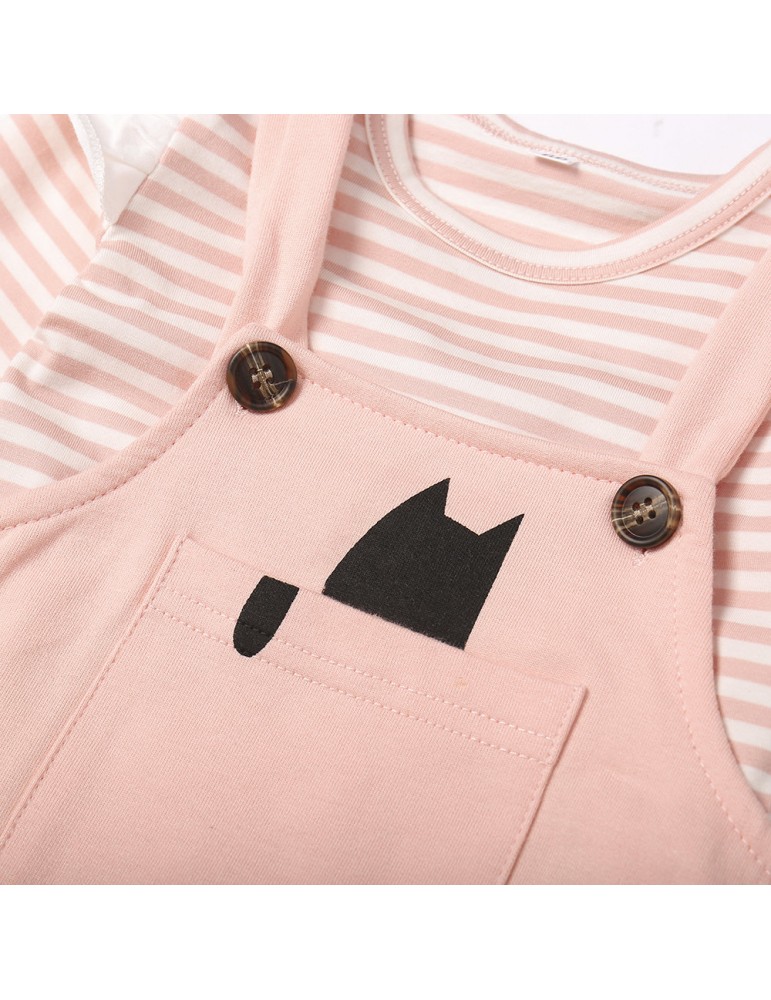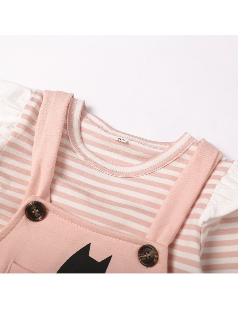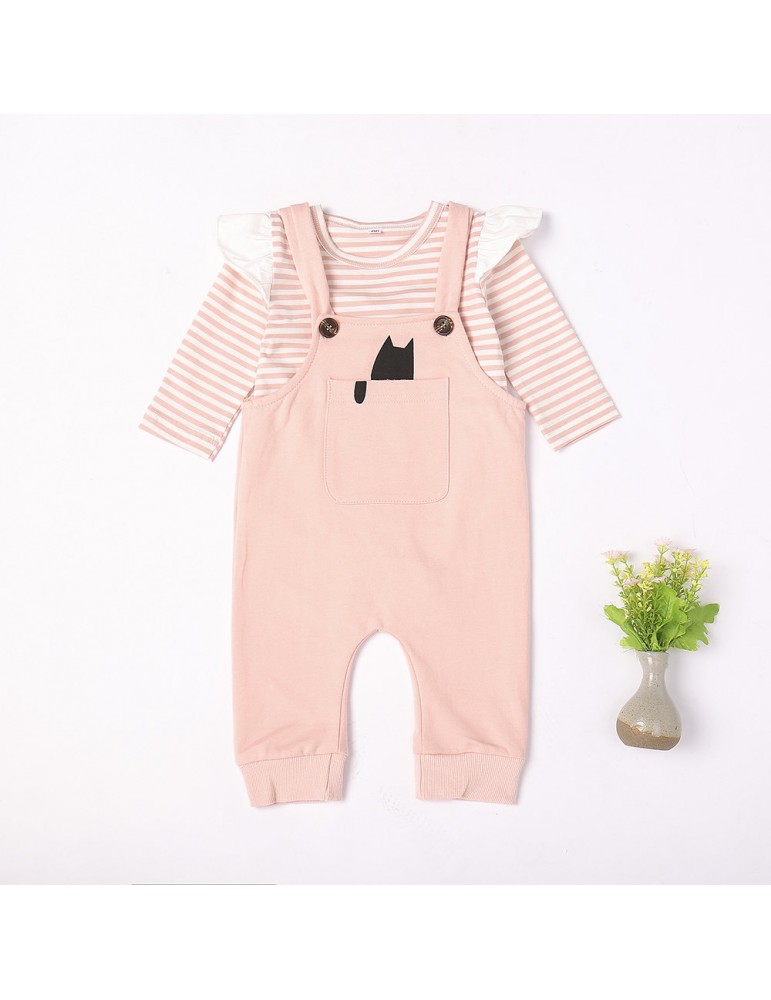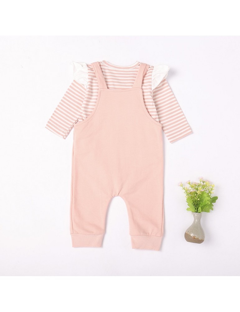 Striped Infant Girls Romper + Suspender Pants Set For 0-3 Years