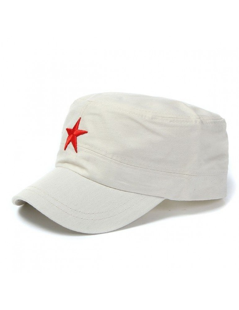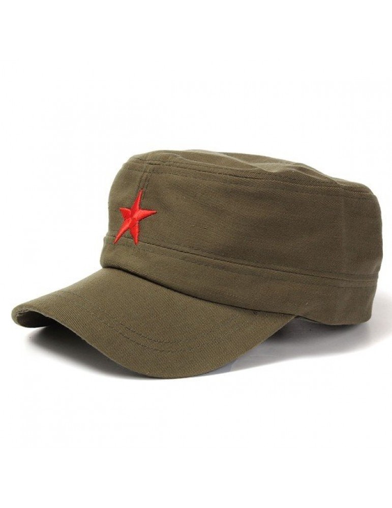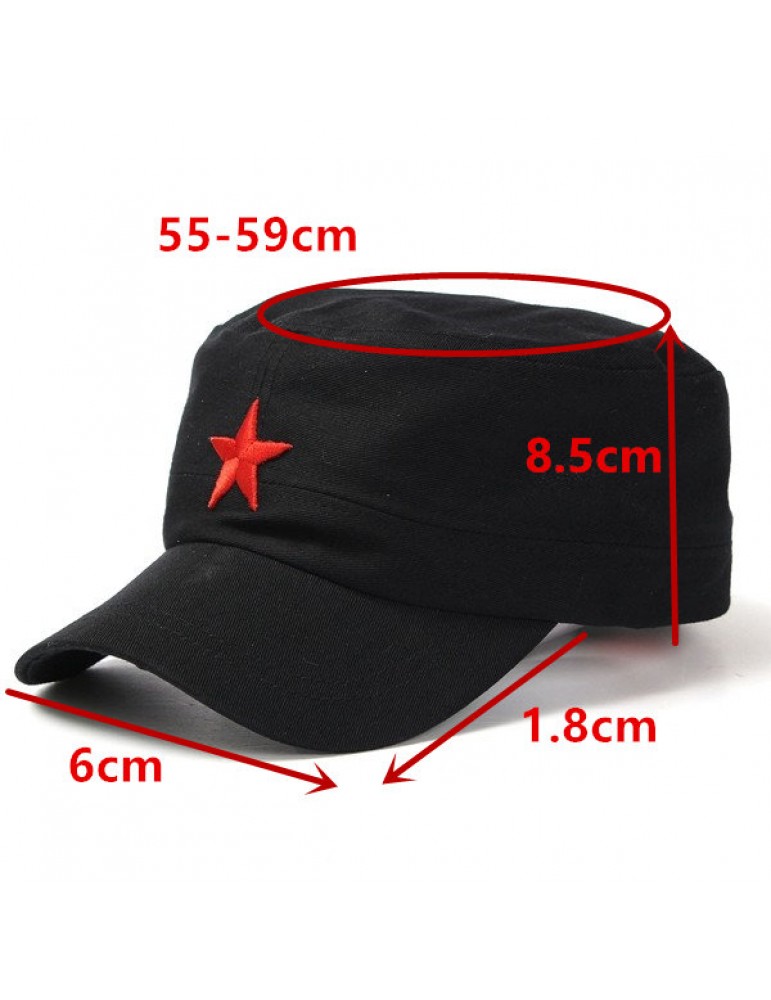 Men Women Red Five-Pointed Star Military Hat Cotton Adjustable Army Cadet Cap Lovers Hat