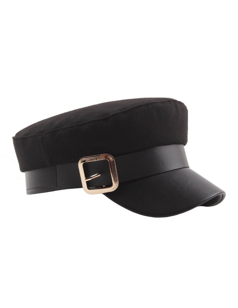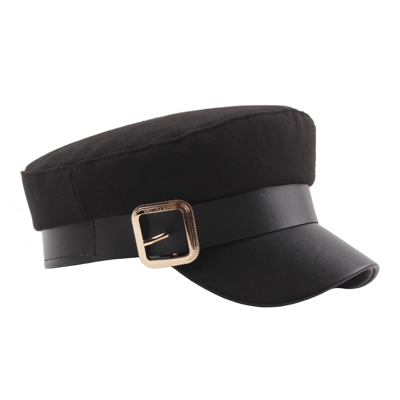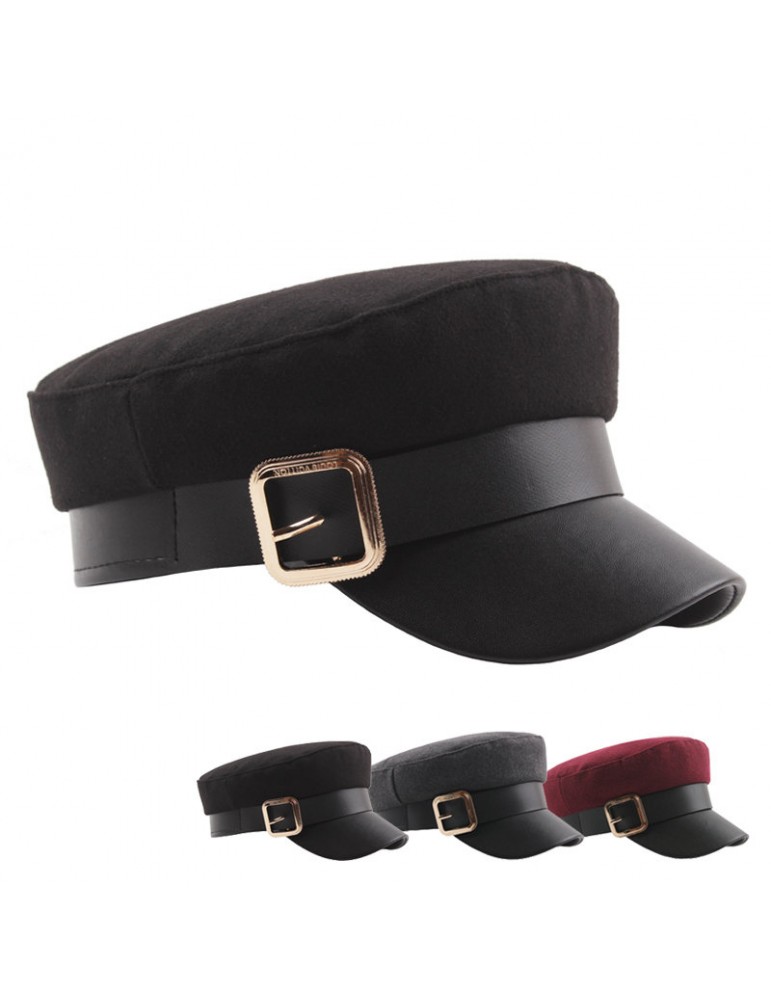 Womens Wild Metal Belt Felt Retro Style Warm Windproof Beret Cap Outdoor Sun Hat